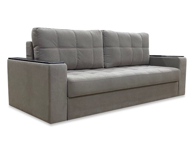 В основании дивана — усиленный металлокаркас и независимый пружинный блок. Сиденье и спальное место останутся неизменно комфортными на долгие годы. Наполнитель подушек — синтепух с ППУ.