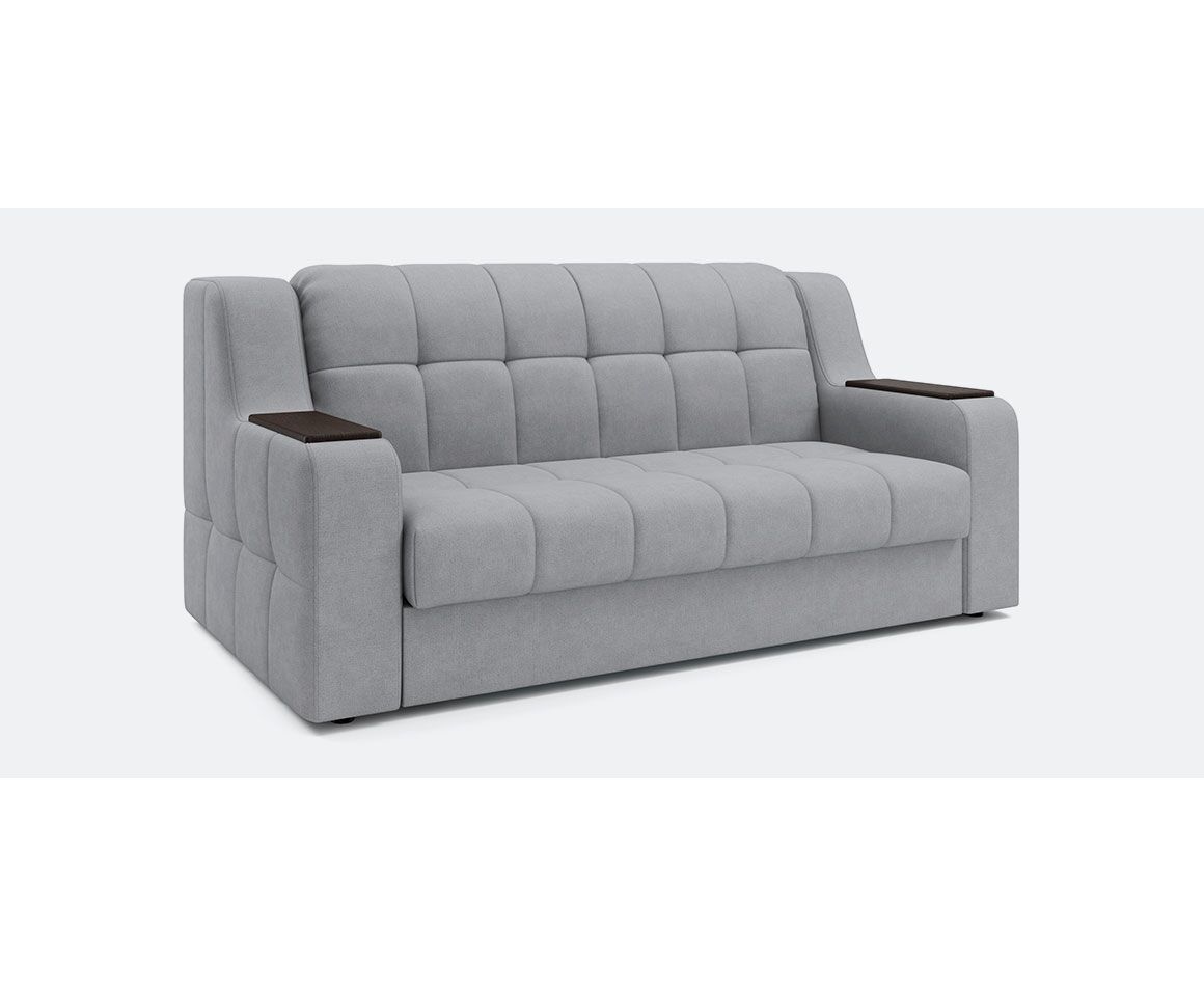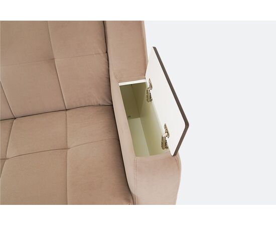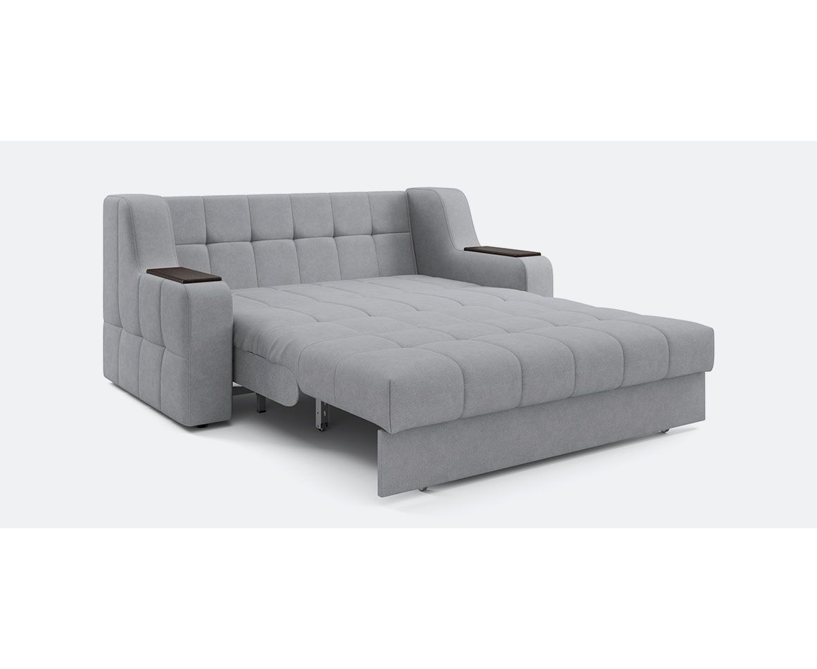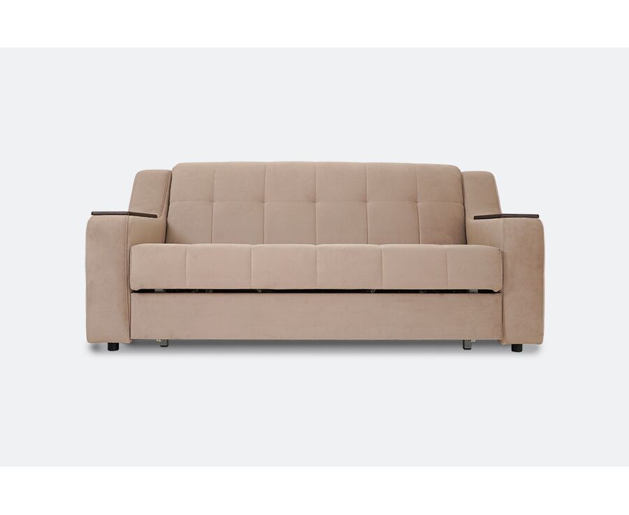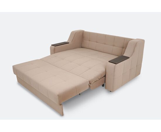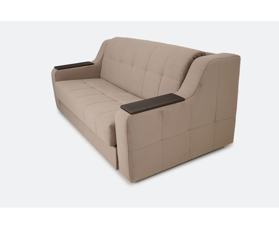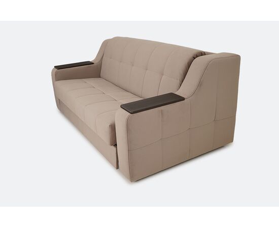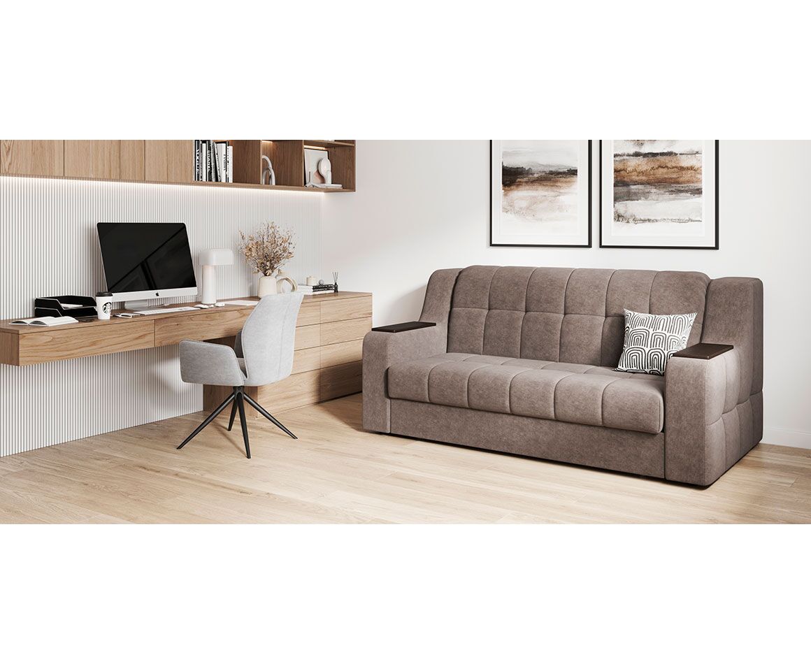 Высокое и мягкое изголовье с декоративными утяжками превращает диван в разложенном виде в элегантную кровать.