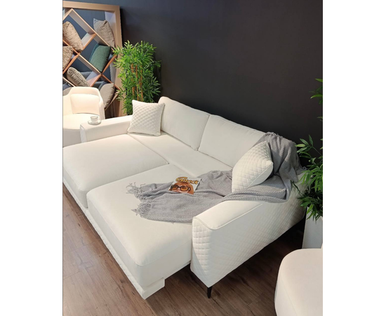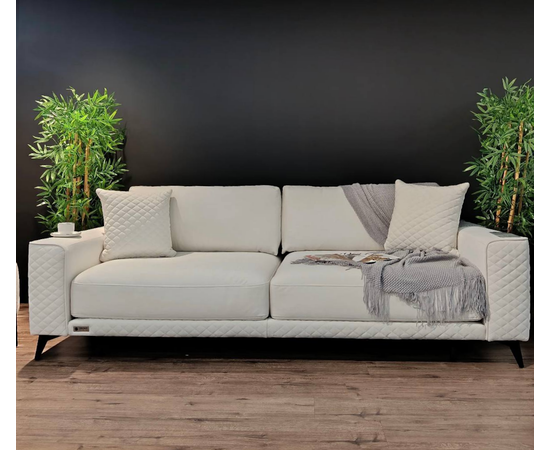 Диван Санторини 2 секции имеет низкий силуэт и высокие тонкие опоры, придающие дивану стройность.