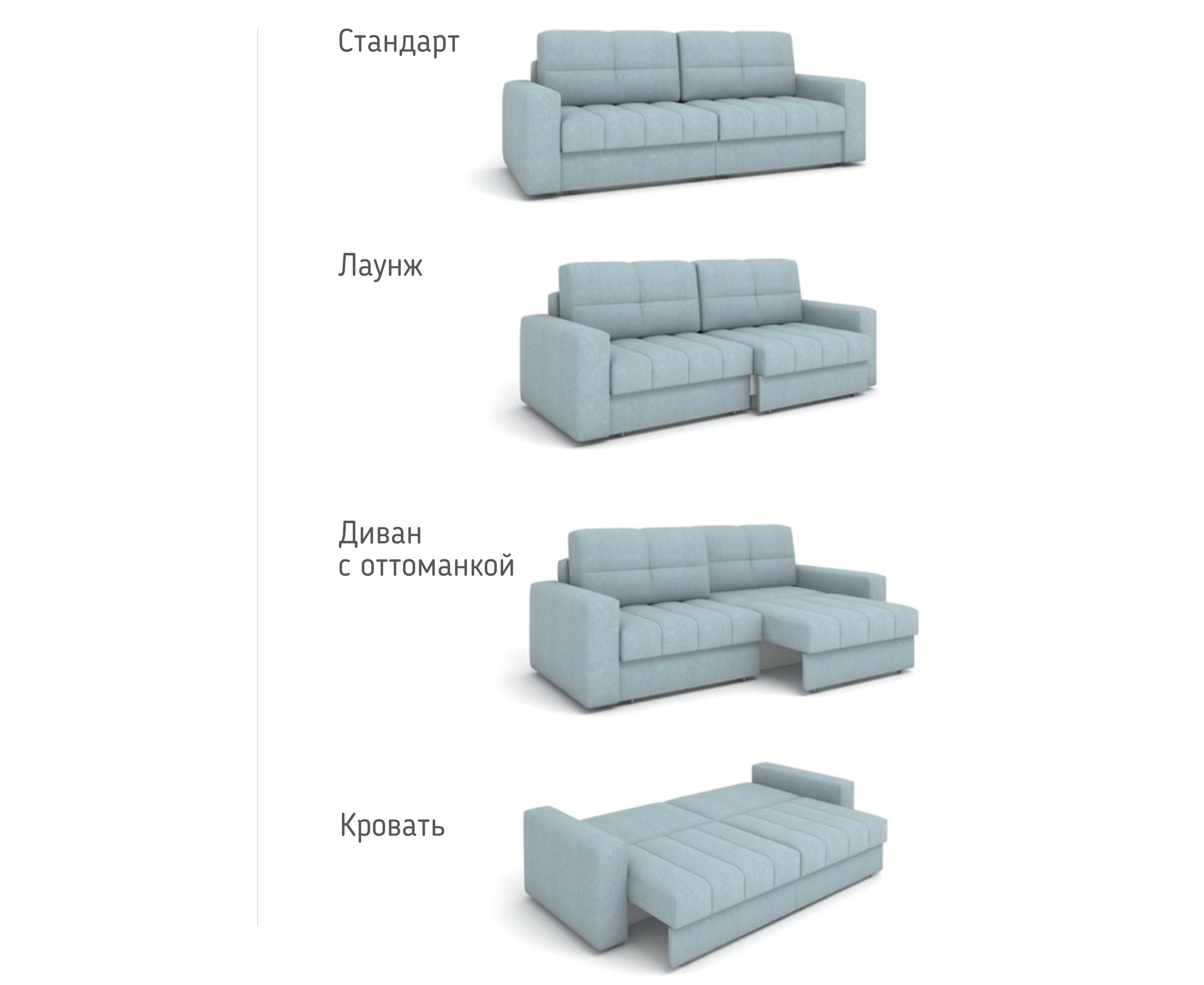 - Три варианта посадки: стандарт, лаунж и оттоманка – идеально для любых сценариев использования