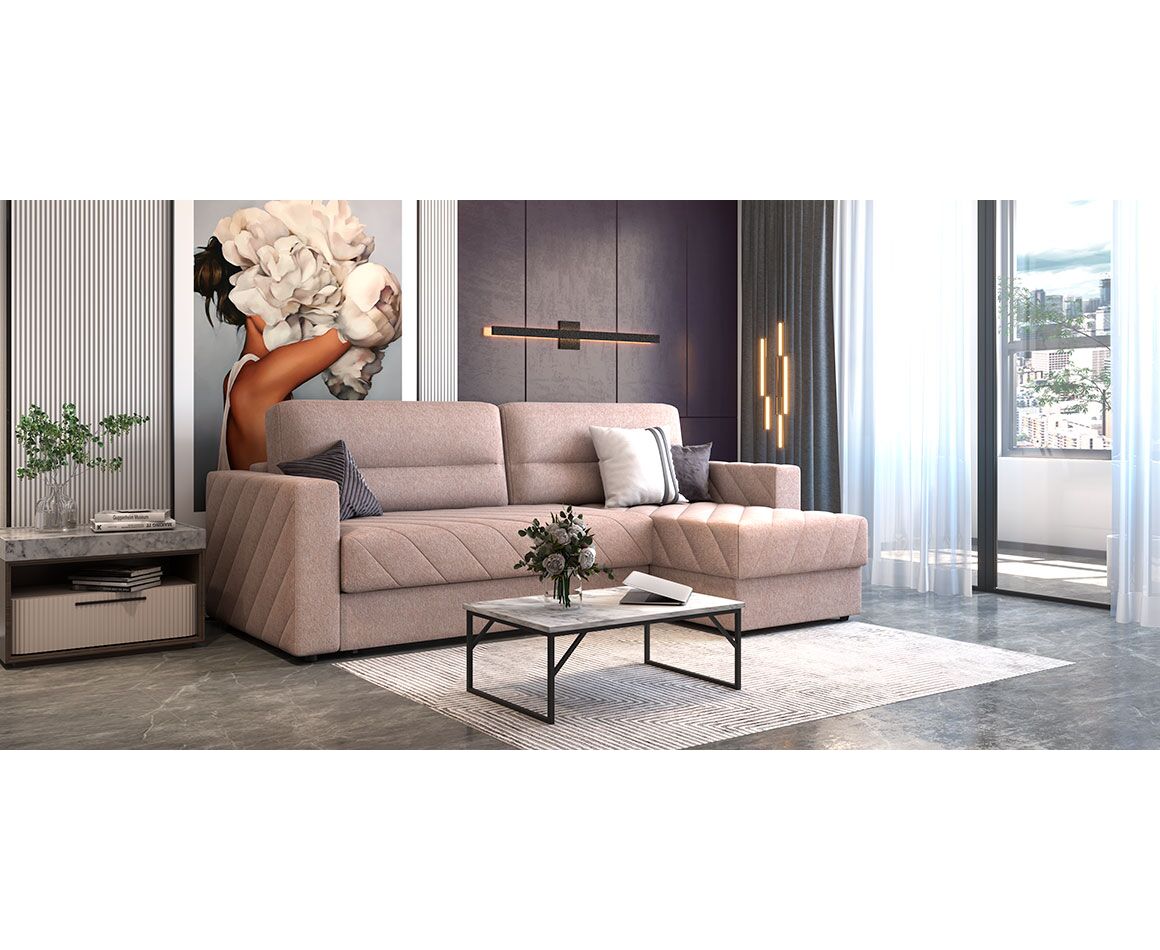 Диван Грэмми гармонично впишется в любой стиль интерьера, добавляя уют и современный шарм. Диагональная стежка визуально подчеркивает лаконичный стиль всего дивана, а также предотвращает растяжение ткани. Подходит для зонирования пространства – задняя спинка выполнена в основной ткани.