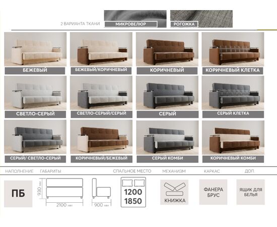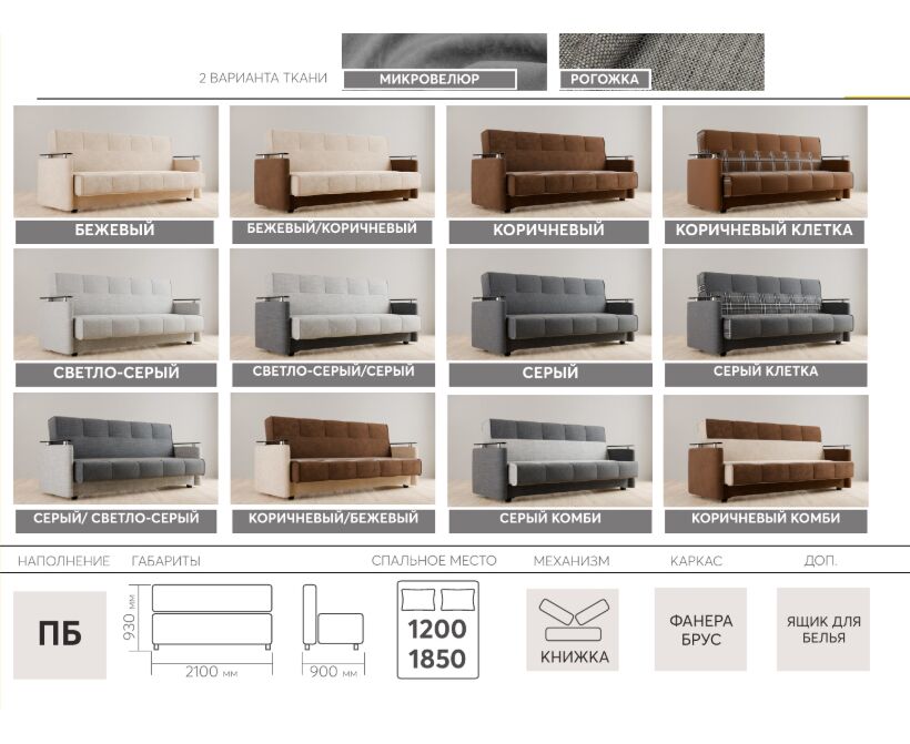 Механизм раскладки: книжка. Имеется ящик для белья.