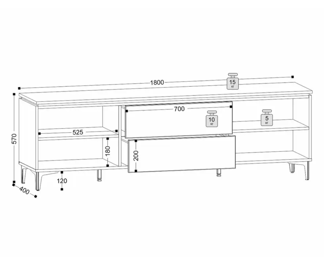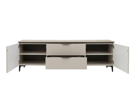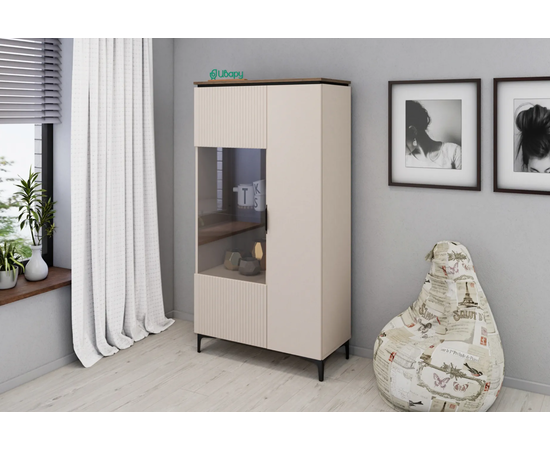 Организуйте систему хранения в комнате красиво! Шкафы-витрины подчеркнут уникальность стиля и помогут удобно организовать пространство. В секциях со стеклянными дверцами можно расположить элементы декора и книги. Располагаются на металлических опорах, что облегчает уборку под ними. На тумбе для ТВ можно разместить телевизор и другую технику, а также хранить различные аксессуары.