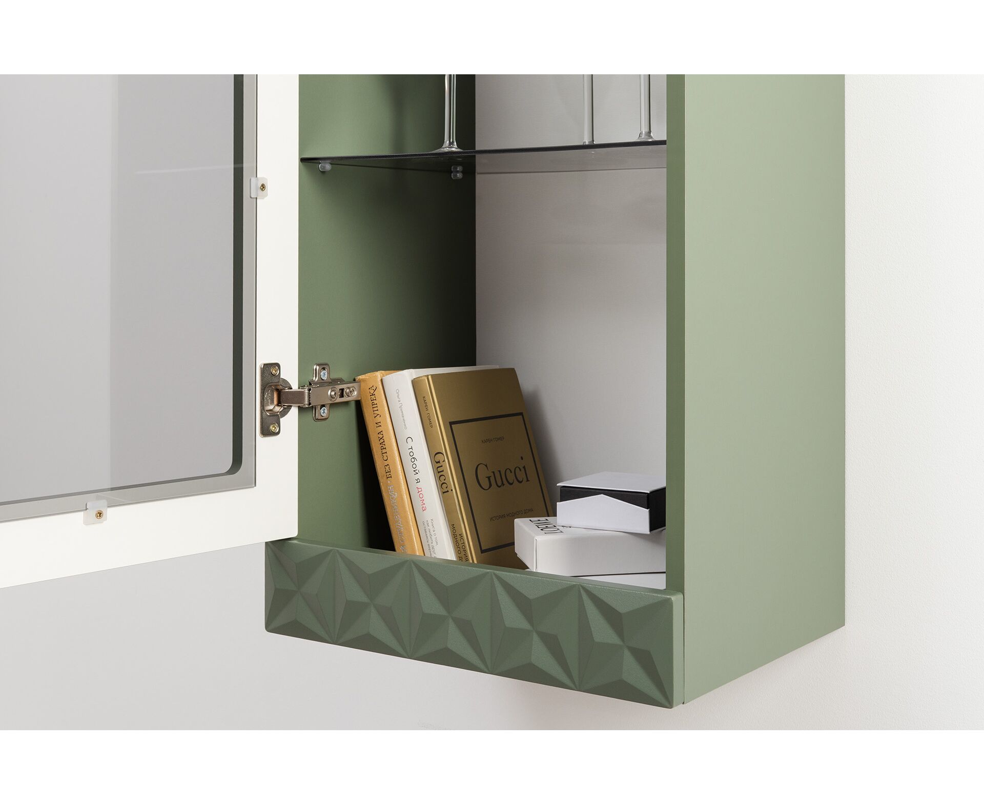В коллекции представлены три типа витрин с тонированным закалённым стеклом, которые придают пространству лёгкость и свет. «Марион» — идеальное сочетание традиций и актуального дизайна в каждой детали.
