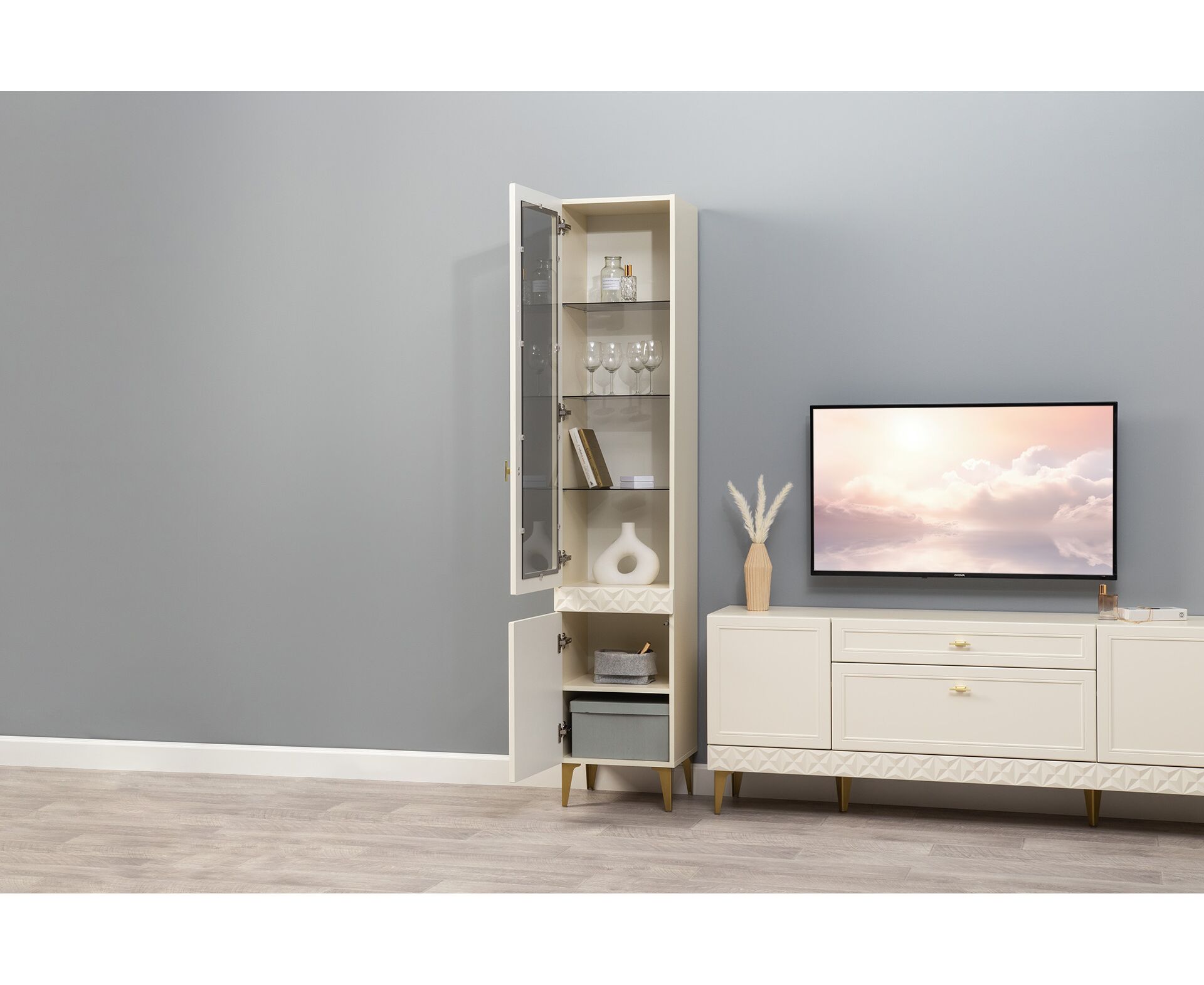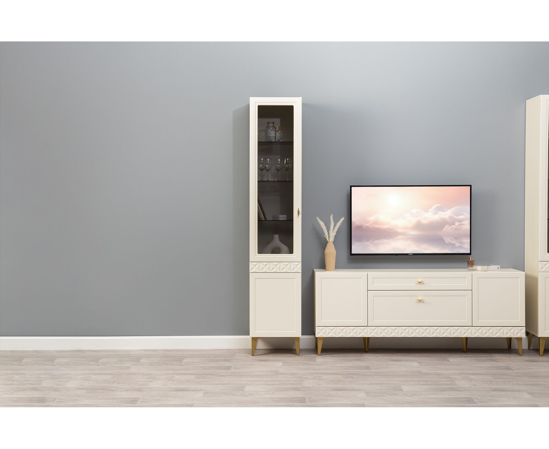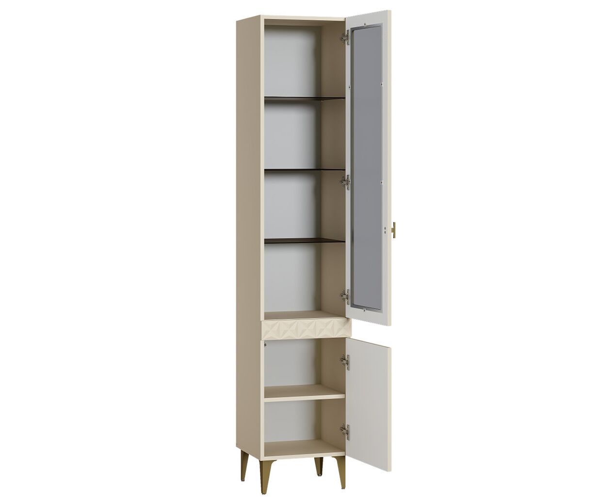 В коллекции представлены три типа витрин с тонированным закалённым стеклом, которые придают пространству лёгкость и свет. «Марион» — идеальное сочетание традиций и актуального дизайна в каждой детали.