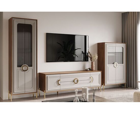Модули гостиной Палермо будут органично смотреться в помещениях, оформленных в современном стиле. Пенал со стеклом отличное дополнение гостиной.