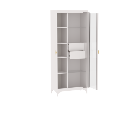 Золотые ручки и молдинги добавляют этой коллекции особый шарм. За функциональность и практичность отвечают надежные петли и направляющие с доводчиками.