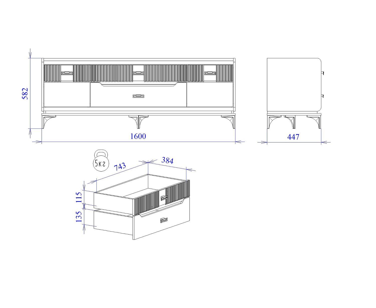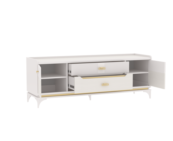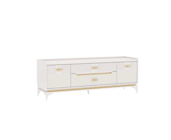 Тумба под ТВ коллекции Сиде Белая достаточно вместительная, выполнена в классическом стиле.