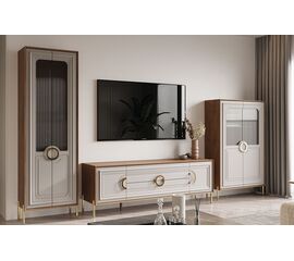 Модульная гостиная  Тиффани  — это классика, которая всегда остается модной и стильной. Изысканность и утонченность линий и форм, сочетание светлого оттенка с древесной структурой, нежных фасадов, обрамленных изящными планками с патиной — всё это создаст атмосферу...