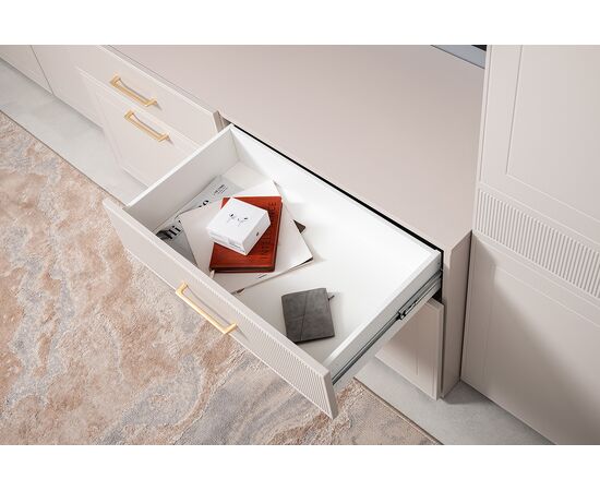 Петли с доводчиками, полное выдвижение ящиков делают использование максимально комфортным.