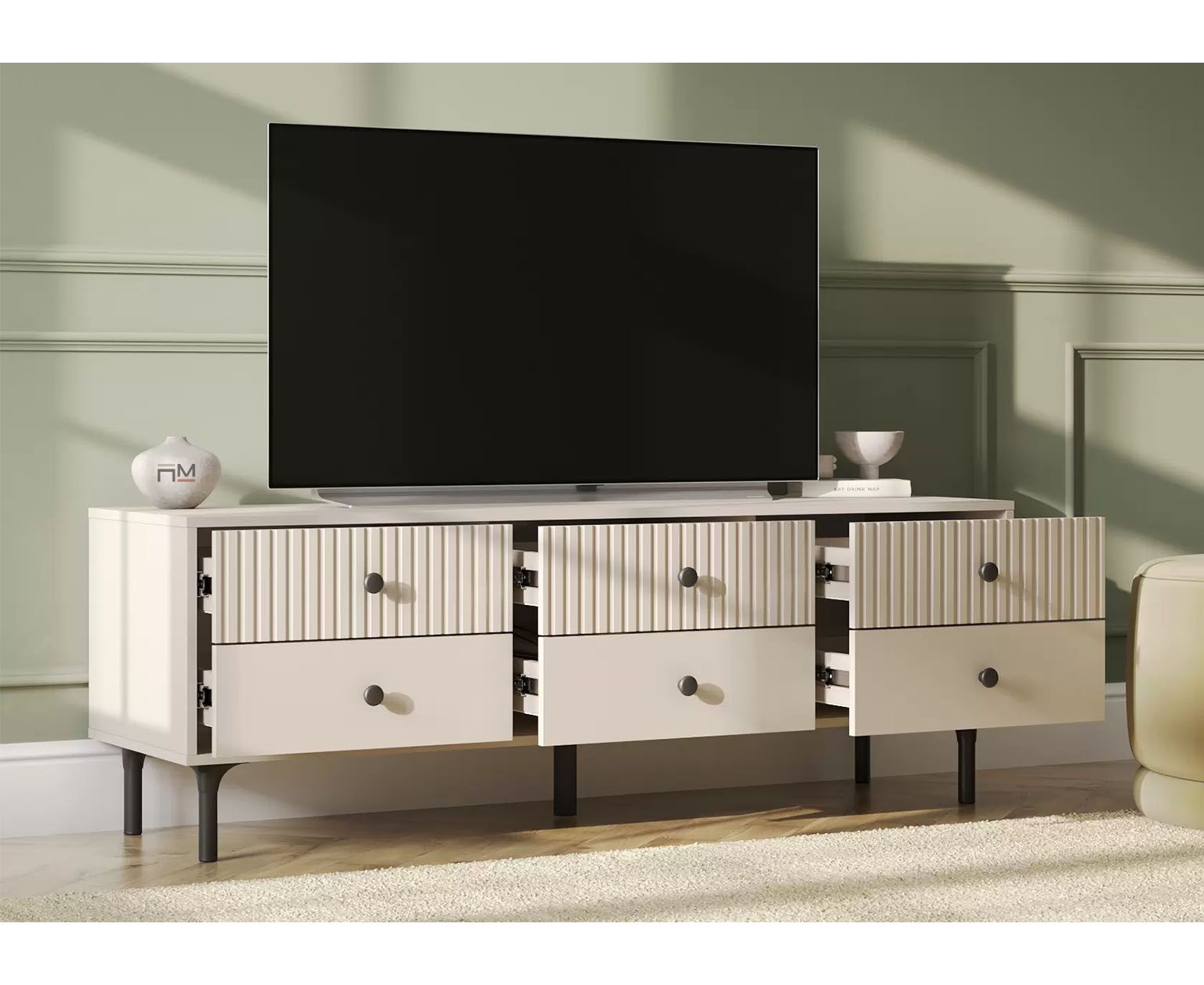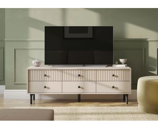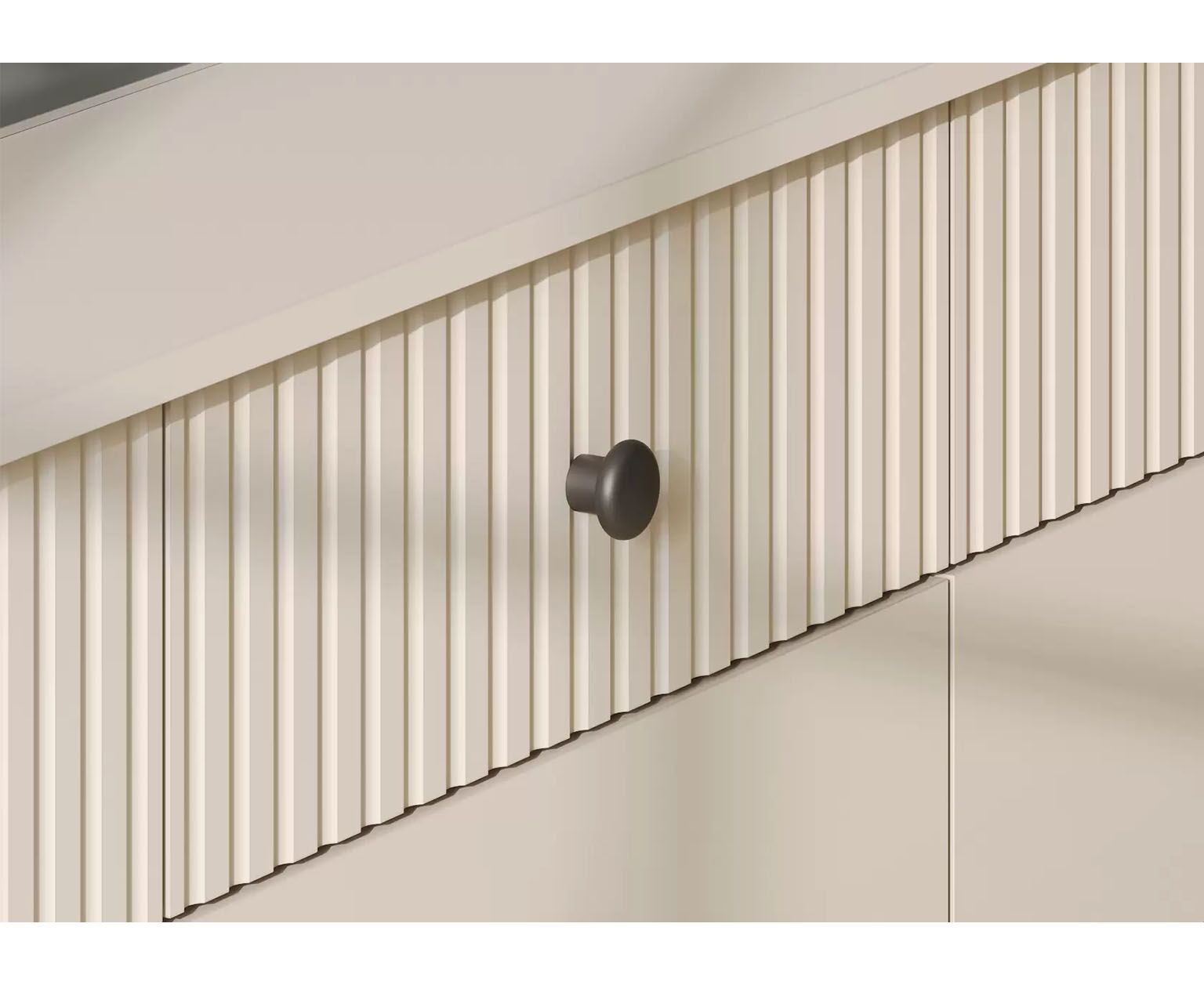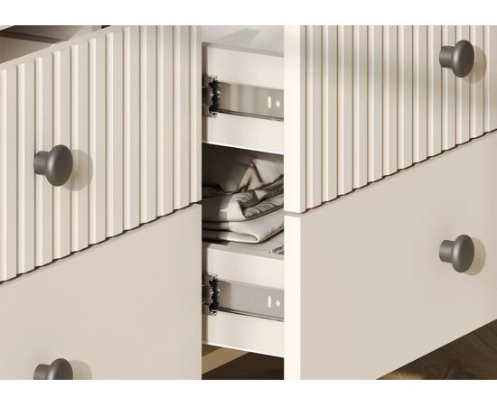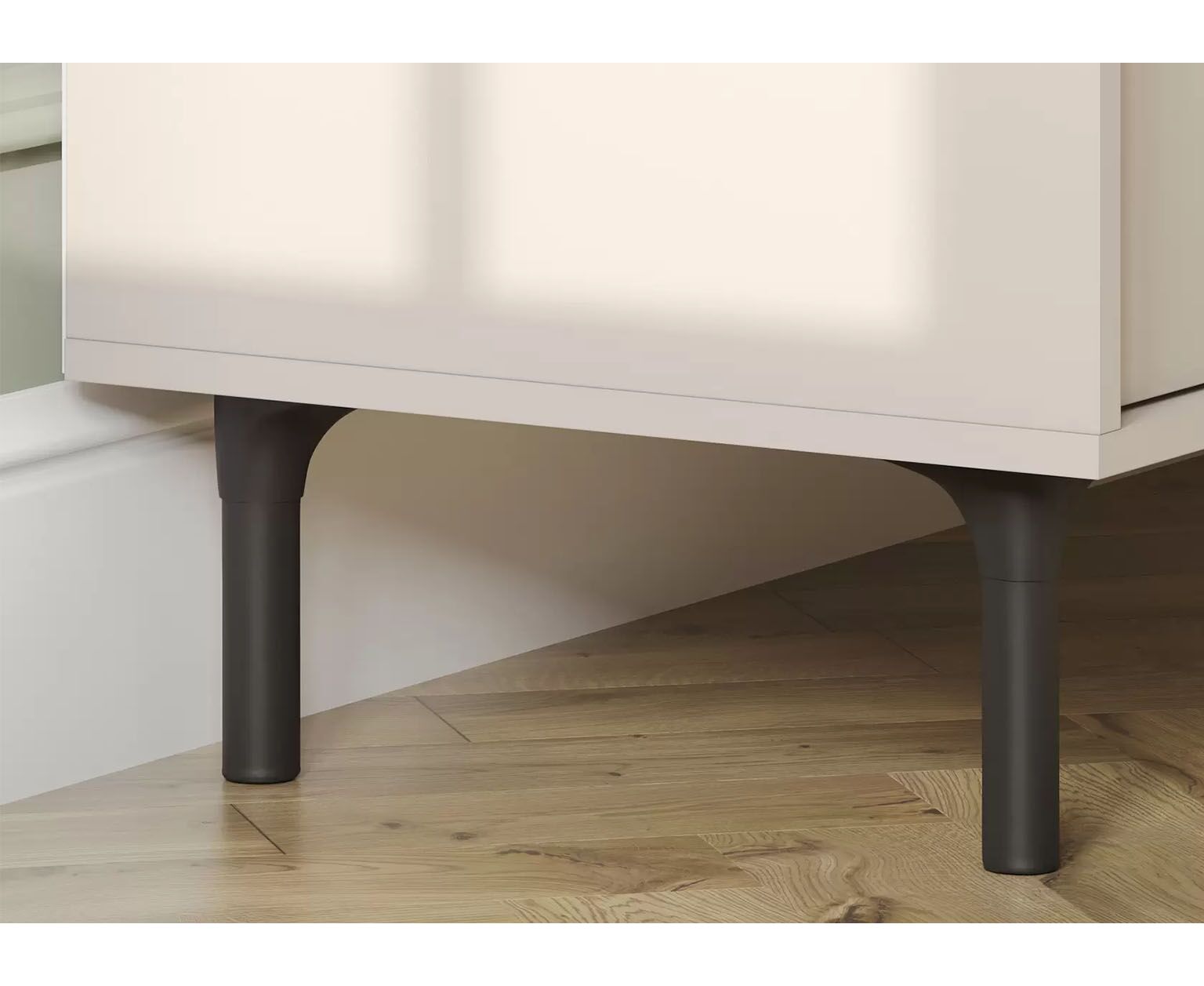 Компактные выдвижные ящики идеально подходят для хранения полезных мелочей. Элегантный дизайн с вертикальной фрезеровкой на фасадах и ножки в цвет фурнитуры делают модель настоящим украшением интерьера.