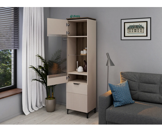 Шкаф-витрина Джулия-21 с одной секцией сэкономит место и поможет удобно организовать пространство в комнате. В секциях со стеклянными дверцами можно расположить элементы декора и книги. Комбинируйте шкаф с другими модулями серии «Джулия» для создания гармоничной системы хранения.