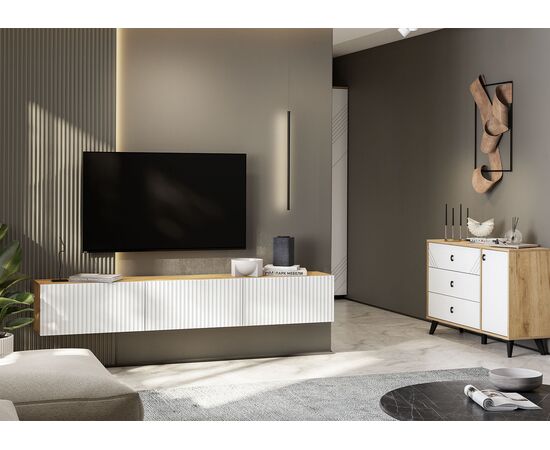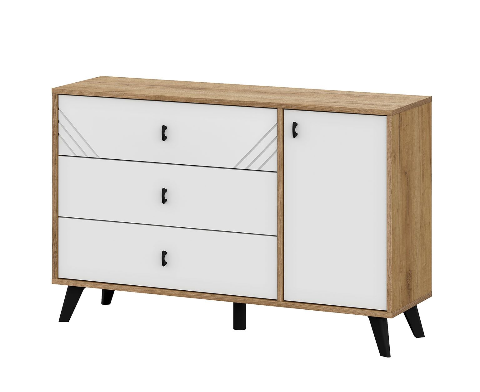 Комод 3 ящика со створкой Байкал (дуб золотой/белый)
