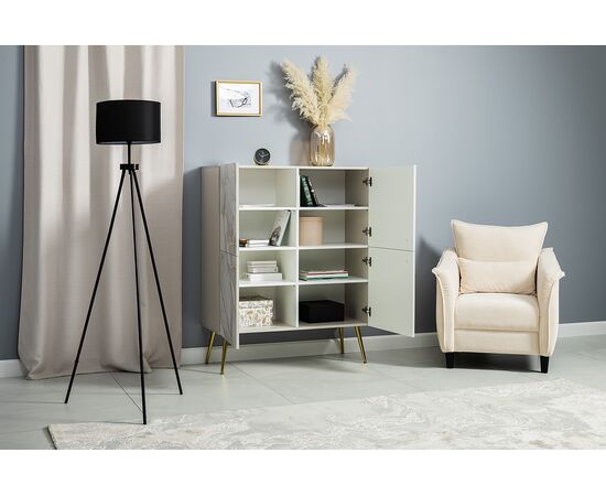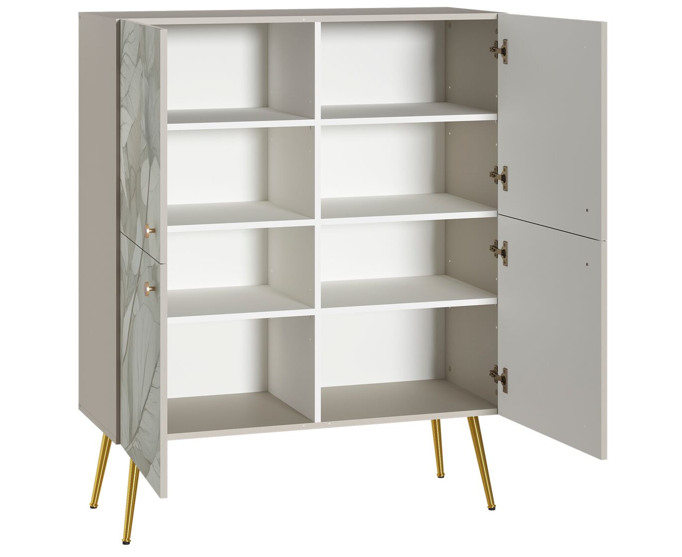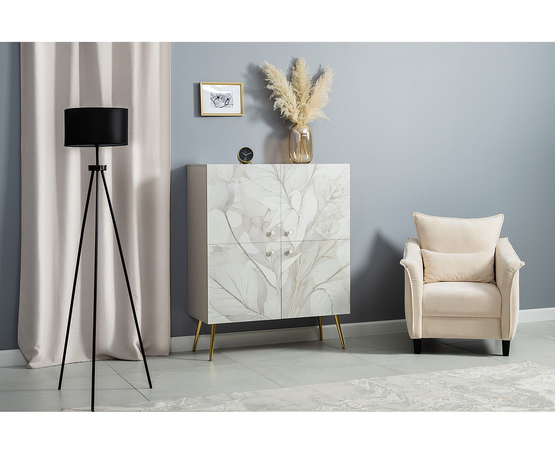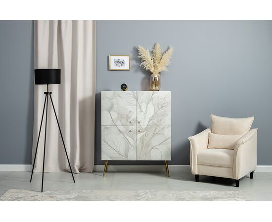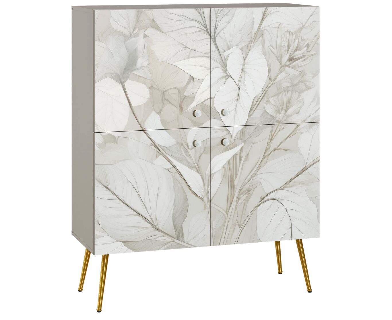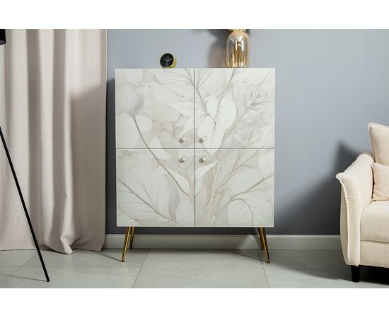 Шкаф Флоу 16.329 выделяется растительным принтом на фасаде, создающими свежий и стильный акцент в интерьере. Металлические ручки и опоры с регулировкой придают конструкции надежность и современный вид. Вместительные отделения, петли с доводчиком и скрытая задняя стенка обеспечивают удобство хранения и аккуратный внешний вид.