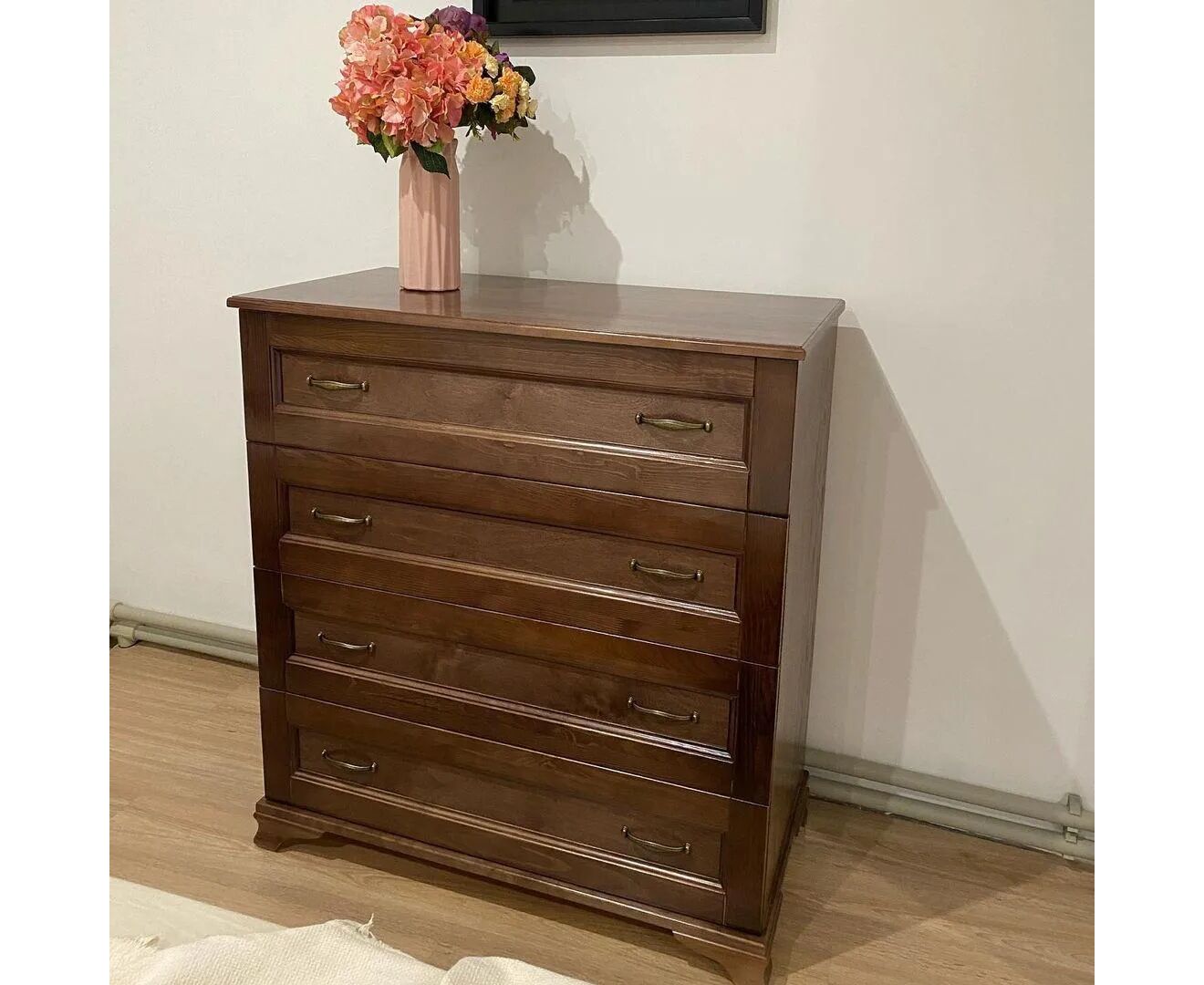 Комод Лира - классический комод, изготовлен из массива сосны. Комод имеет 4 ящика с шариковыми направляющими 100% выдвижения (ящики можно укомплектовать доводчиками за доплату).