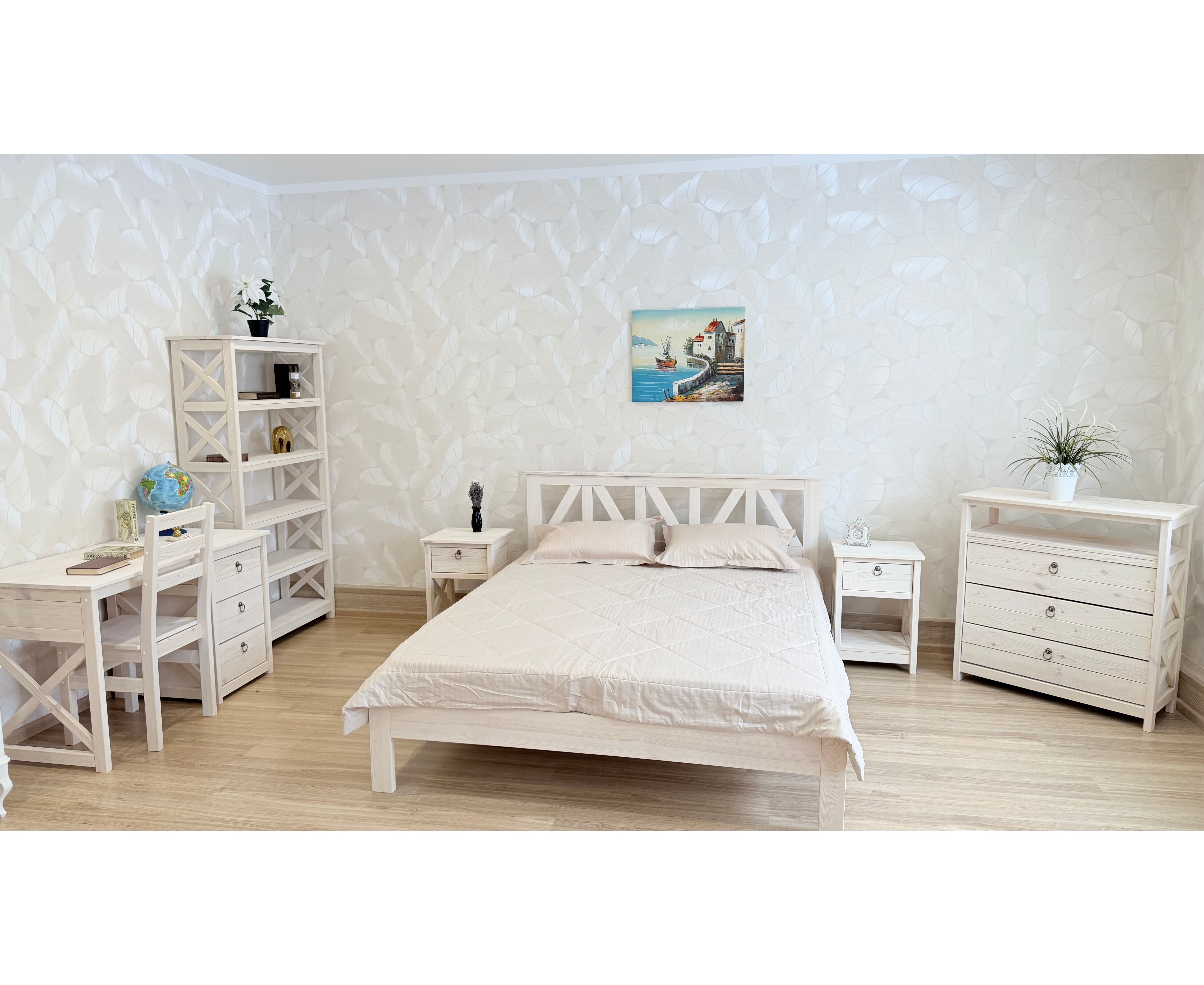 Кровать можно дополнить различными модулями, тумбы, комоды, стеллажи, шкаф.