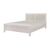 Велюровая ткань мягкой вставки светло-бежевого оттенка хорошо смотрится как с белым, так и с льняным вариантом исполнения кровати.