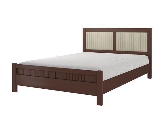 Элегантная кровать «Фрида» выполнена из массива сосны. Сочетание вертикальных линий отстрочки мягкой вставки изголовья гармонирует с повторяющей их фрезеровкой на изножье кровати, что придаёт модели элегантный вид и создаёт атмосферу уюта и комфорта.