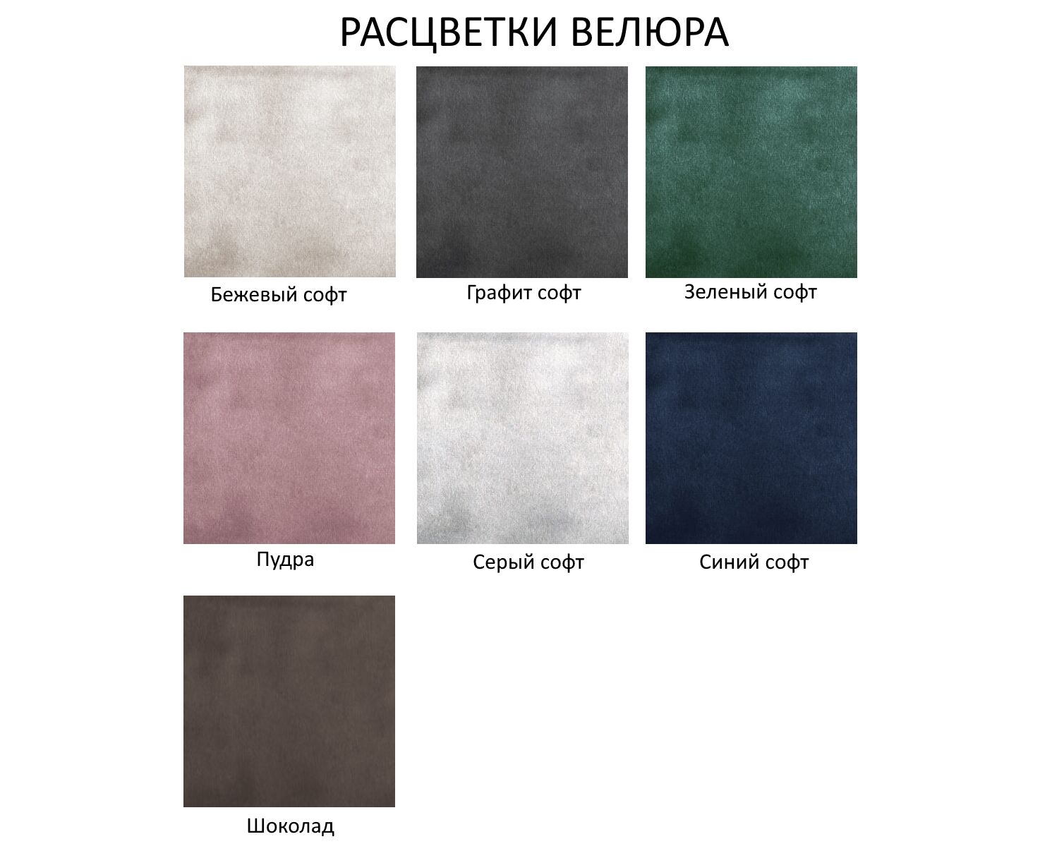 Кровать доступна в нескольких расцветках велюра на выбор.