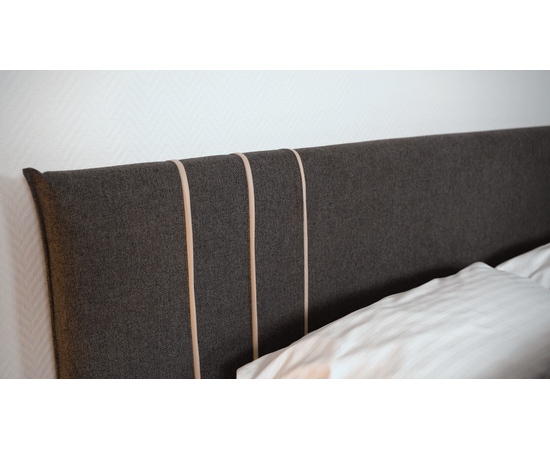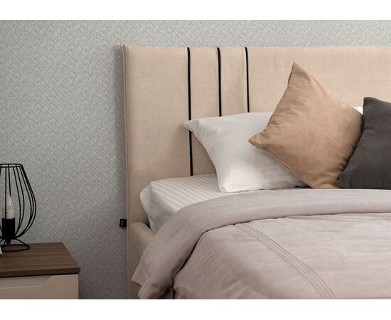 Встроенные карманы в изголовье создают дополнительный комфорт и практичность, позволяя хранить мелочи под рукой. Элегантное изголовье в сочетании с четкими линиями каркаса придают мебели современный и минималистичный вид.