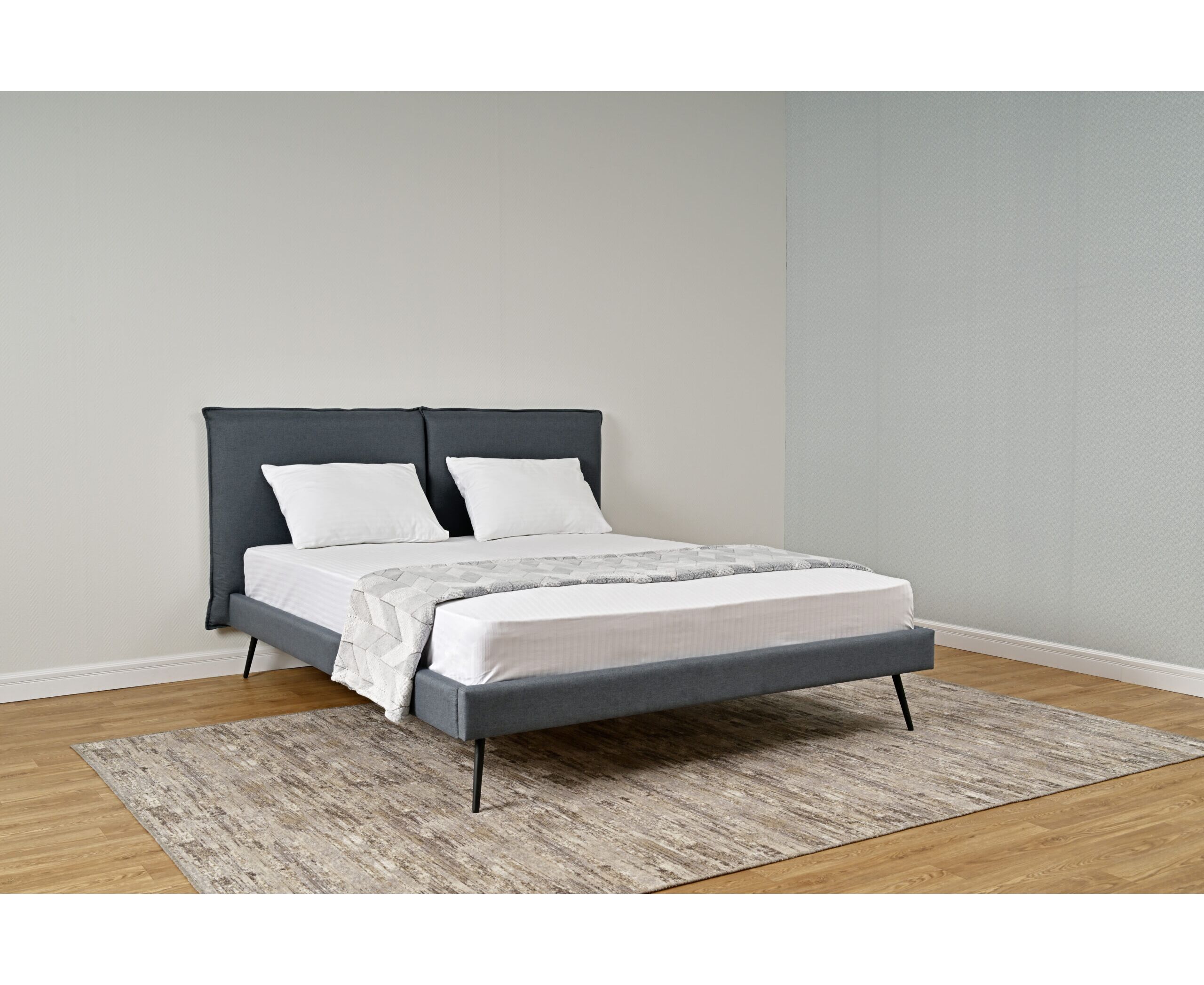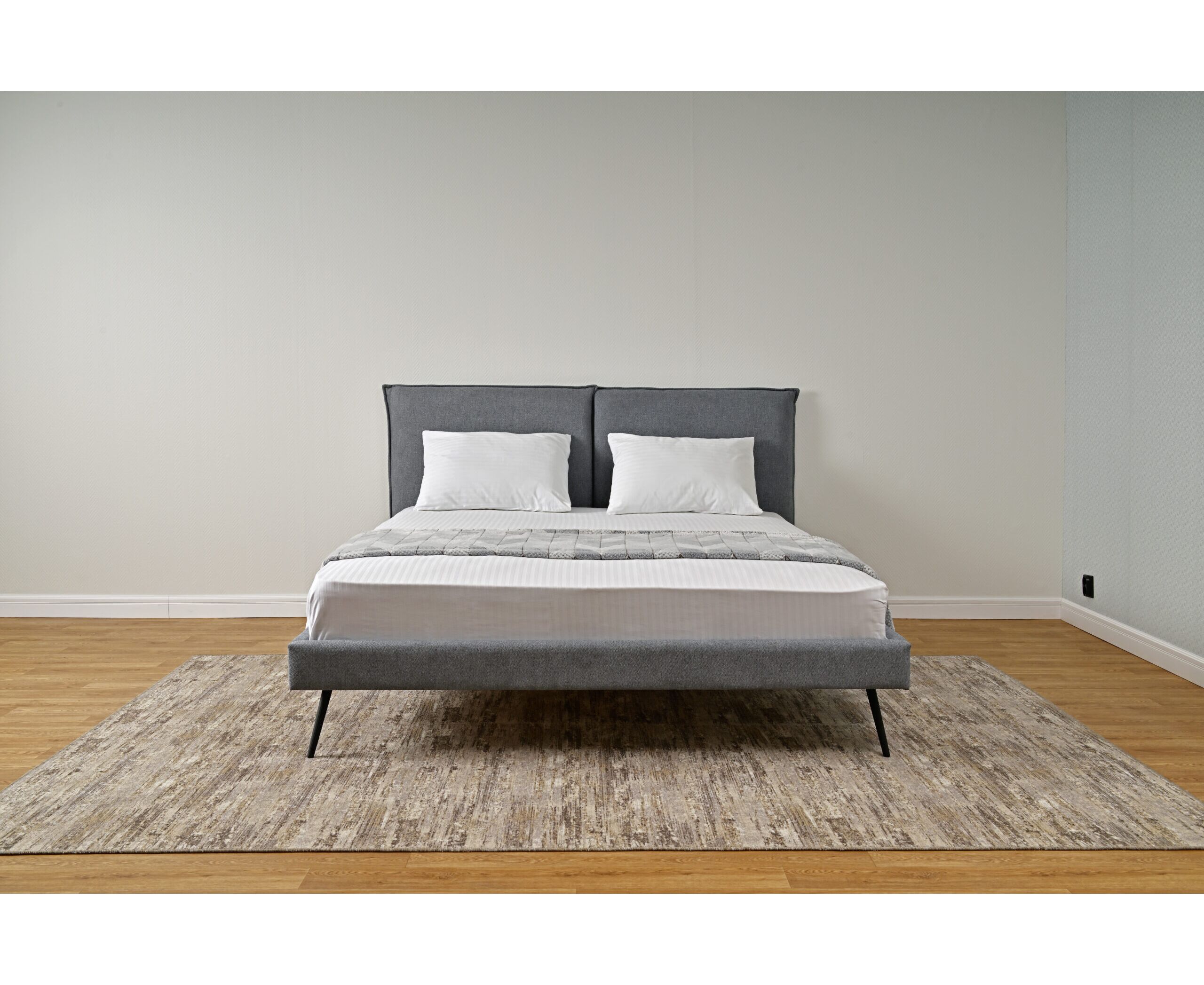 Изголовье кровати состоит из двух мягких подушек, которые обеспечат вам дополнительный комфорт и поддержку во время отдыха.