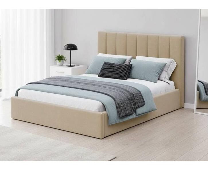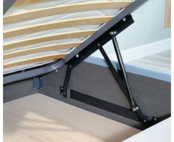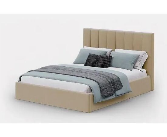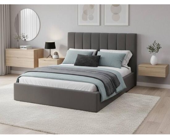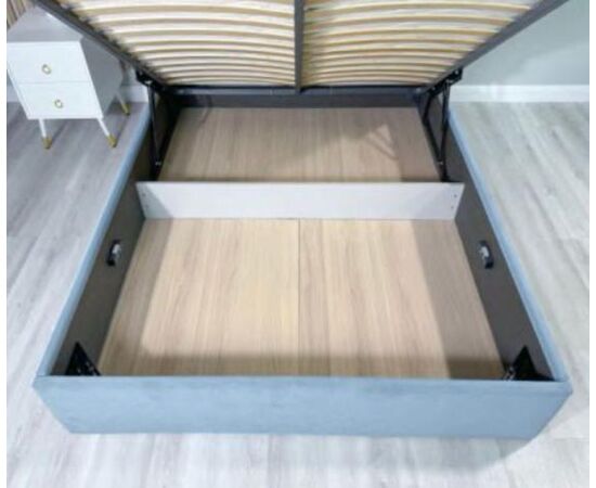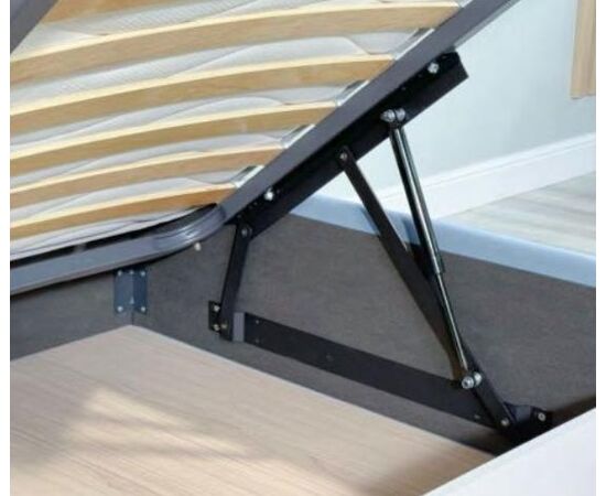 Кровать без ножек, имеет цельное ортопедическое основание с подъемным механизмом и большим бельевым настилом ЛХДФ