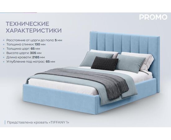 Кровать Тиффани-1 - стильная и лаконичная кровать в современном дизайне. Прекрасно впишется в интерьер спальной комнаты. Практичный функционал - кровать укомплектована подъемным механизмом с нишей для хранения вещей. Приятная и легкая в уходе велюровая ткань, доступна для заказа во множестве расцветок.