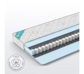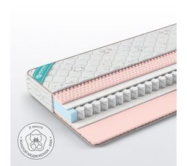 Состав матраса Синти Лайт: 1. Чехол из детского хлопкового жаккарда 2. Пена Ergoflex (2 см) 3. Кокос (1 см) 4. Независимый пружинный блок (256 пружин/м2) 5. Пена Ergoflex (2 см) 6. Чехол из детского хлопкового жаккарда. Матрас «Sinti Light» (Синти Лайт) — отличный анатомический...