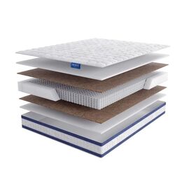 Кокосовое волокно, применяемое при производстве этого матраса, представляет собой пропитанные латексом (латексированные) термоскрепленные плиты. Высокое содержание латекса (50%) обеспечивает материалу упругость и устойчивость к нагрузкам. Экологичность, природная эластичность и хорошая воздухопроницаемость плит из кокосового волокна делают поверхность матраса жесткой и упругой.