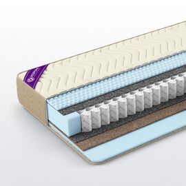 Кокос Trio - тройной слой материалов на основе натурального кокосового волокна. Обладает повышенными ортопедическими свойствами, обеспечивая качественную поддержку позвоночника, хорошо вентилируется, не позволяя оставаться влаге внутри матраса. Не имеет запаха, гипоаллергенен. Высота 1 см.