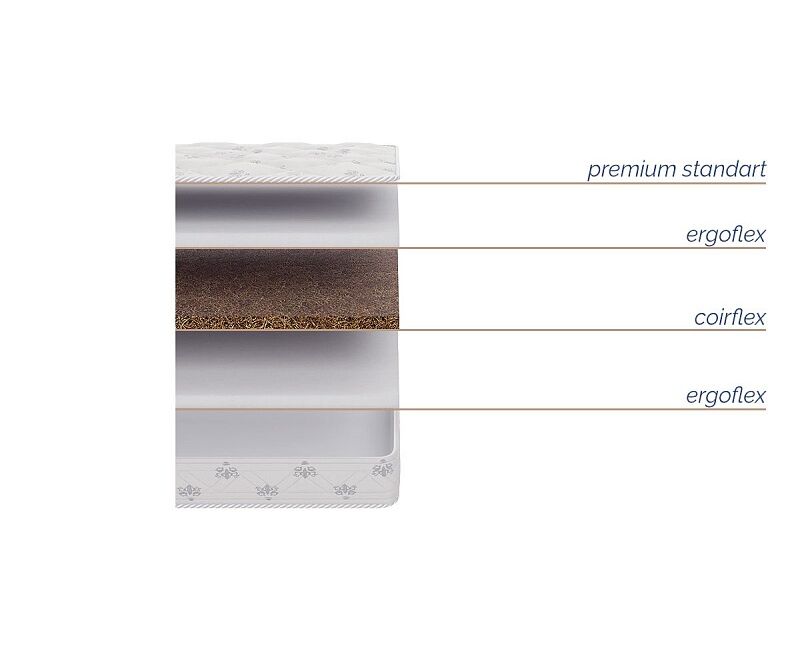 Кокос — пропитанные латексом (латексированные) термоскрепленные плиты. Высокое содержание латекса (50%) обеспечивает материалу упругость и устойчивость к нагрузкам. Экологичность, природная эластичность и хорошая воздухопроницаемость плит из кокосового волокна делают поверхность матраса жесткой и упругой. Благодаря жесткости кокоса, матрас обладает высокими ортопедическими свойствами.