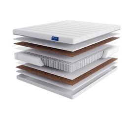Состав матраса Милано: 1 Чехол Classico на молнии (Трикотажное бамбуковое полотно, простеганное на 300 г файбера 2 Би- Кокос 1см 3 Блок независимых пружин (256 пр/м.кв) 4 Пена ERGOFLEX 2 см 5 Чехол Classico на молнии (Трикотажное бамбуковое полотно, простеганное на 300 г файбера...