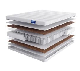 Состав матраса Драйв: 1 пенополиуретан - 20 мм; 2 термовойлок; 3 блок независимых пружин TFK; 4 спанбонд; 5 кокосовая койра - 10 мм; 6 пенополиуретан - 10 мм; 7 ППУ по периметру. 8 Чехол матраса: Трикотаж Драйв - двусторонний ортопедический матрас с разной жесткостью сторон. Имеет...