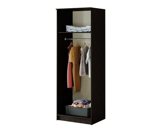 Лаконичная модель двухстворчатого шкафа "Фиеста" справится с размещением небольшого гардероба. При этом модель содержит достаточно вместительную зону с хромированной штангой для верхней одежды или одежды на вешалках, а также верхнее и нижнее отделение для хранения вещей. Можно дополнительно укомплектовать полками П-800 (3 шт), которые приобретаются отдельно. Изделие изготовлено из высококачественной ЛДСП в классическом сочетании цветов "венге" и "лоредо".