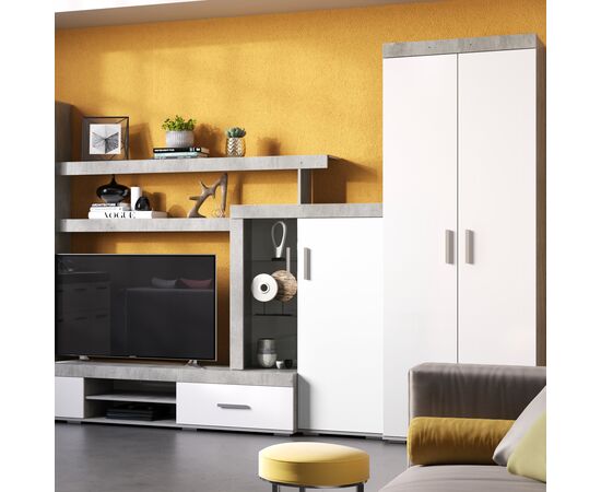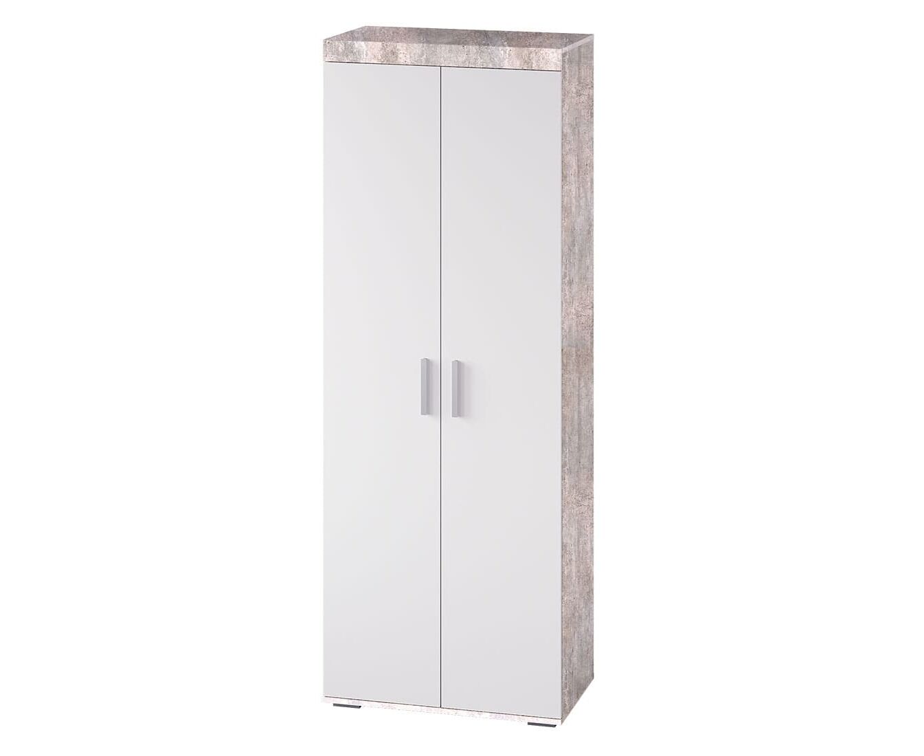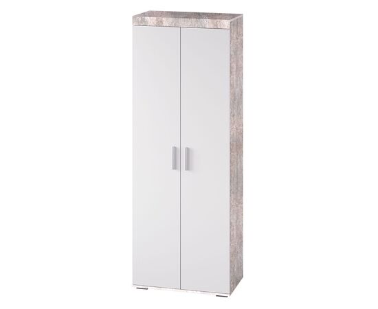 Организовать хранение в современном интерьере можно с помощью стильного двухстворчатого шкафа "Инстайл". Модель полностью выполнена из ЛДСП из комбинации двух цветов – серый и белый. Две распашные створки дополнены геометрическими удлиненными ручками. Шкаф состоит из двух ниш для необходимых вещей и отделения с хромированной штангой для одежды на вешалках.