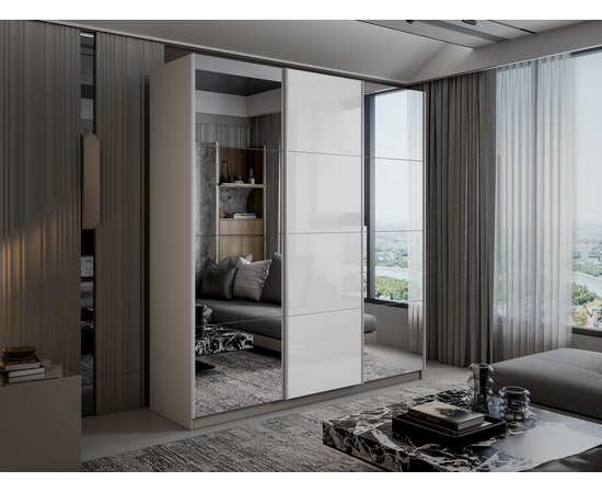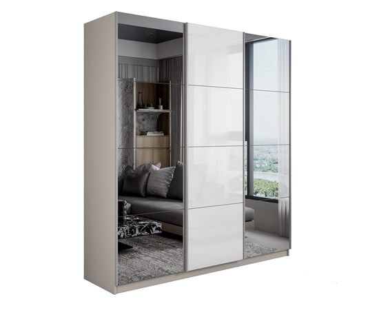 Шкаф-купе Прайм 3-х дверный Кашемир (фасады зеркало / белое стекло)