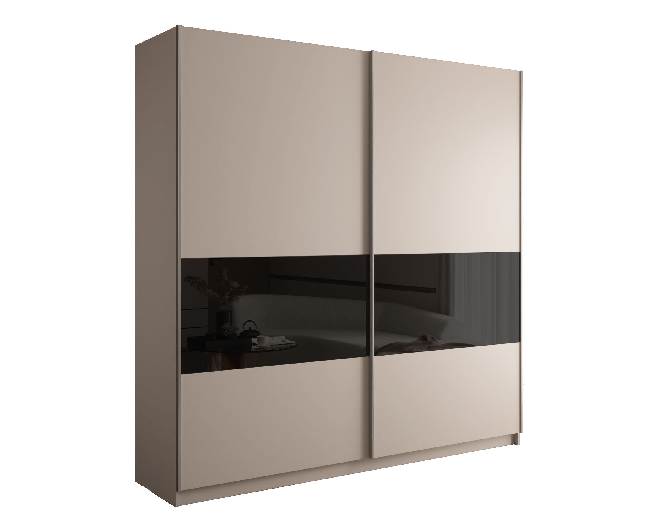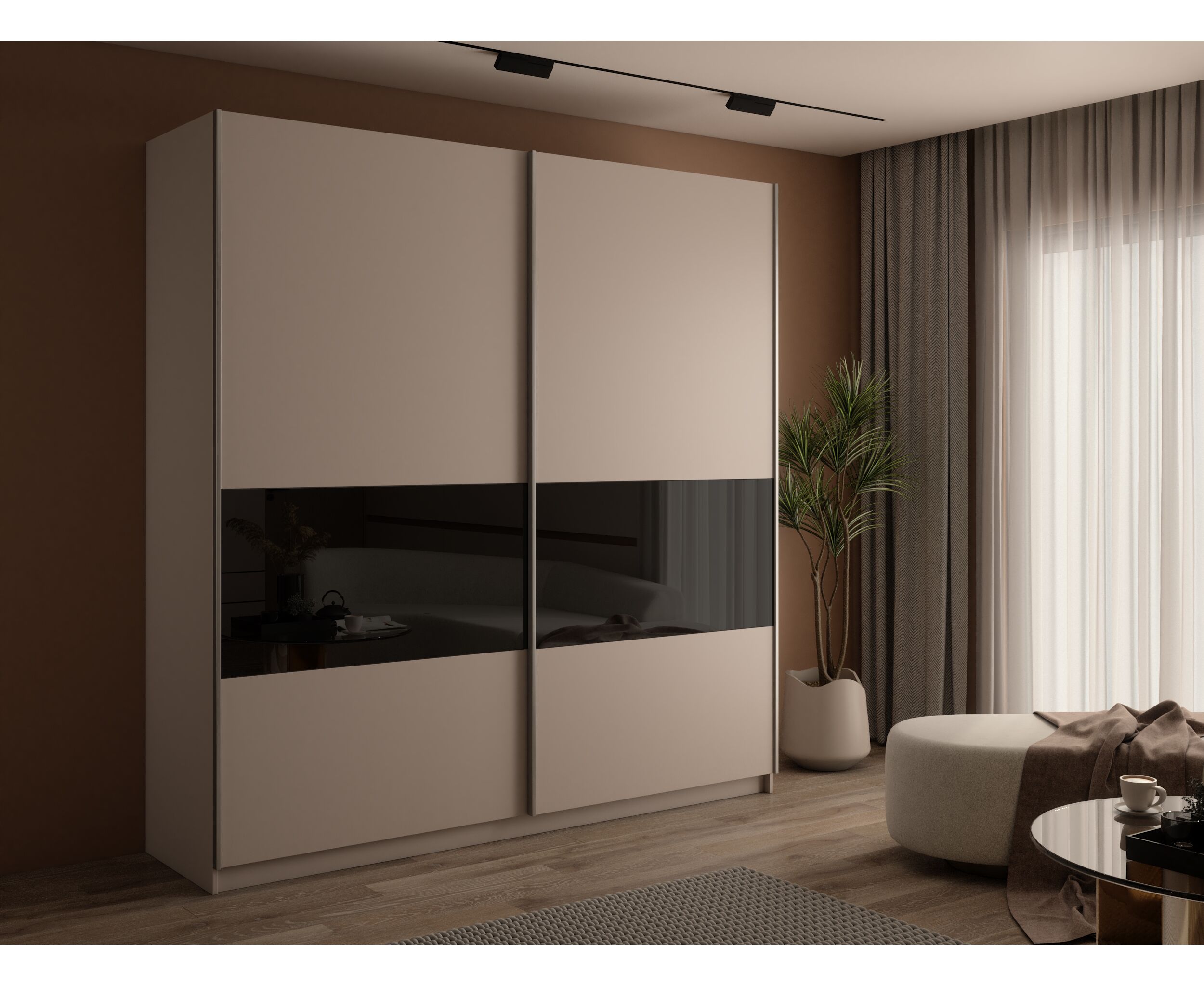 Шкаф-купе Прайм Широкий 2-х дверный Кашемир (фасады дсп / стекло чёрное)