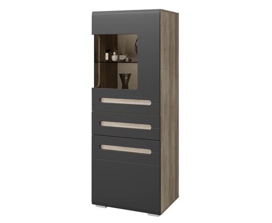 Шкаф распашной из серии "Наоми" – красивое решение для современного интерьера. Он прекрасно будет смотреться в вашей гостиной. В нем можно разместить предметы декора, посуду, книги и другие вещи. Модель оснащена распашными дверцами и выдвижным ящиком на роликовых направляющих. Фасады изготовлены из МДФ цвета "графит". В верхнюю створку вставлено тонированное стекло, что придает модели легкости и стиля.
