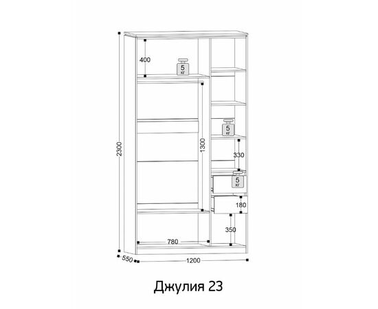 Вместительный 3-х створчатый шкаф Джулия-23 представляет из себя идеальную систему хранения. Распашные двери легко открываются, а доводчики обеспечивают плавное и бесшумное закрытие. Просторные отделения и полки двух видов: открытые и выдвижные, обеспечивают удобное хранение одежды, обуви и аксессуаров.