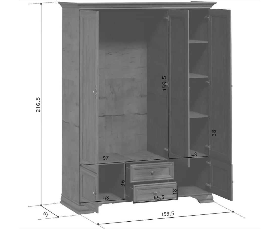 4. Шкаф 3-створчатый Кентаки каштан SZF5D2S - 1 шт.