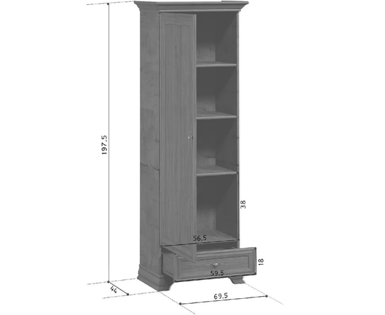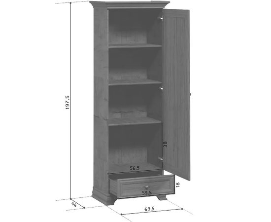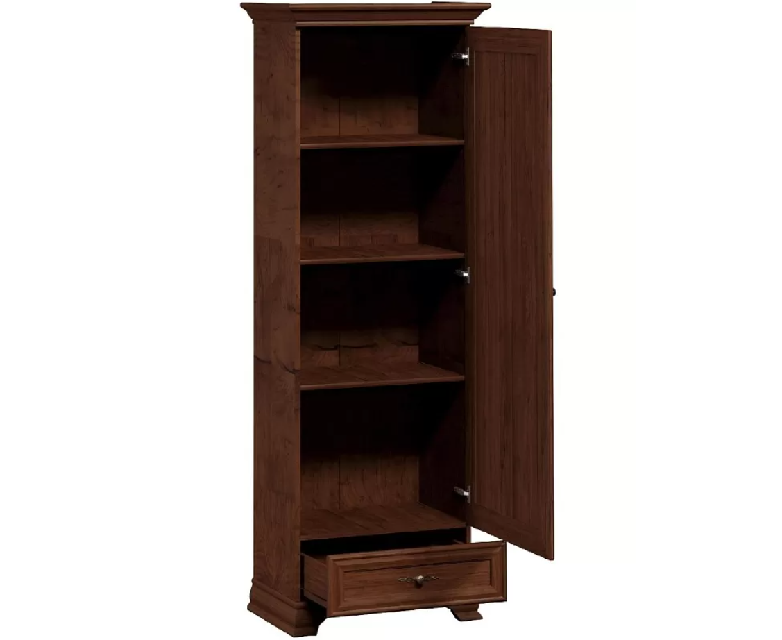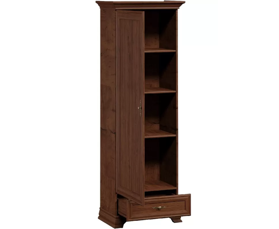 Узкий одностворчатый шкаф каштанового цвета Кентаки REG1D1S изготовлен в Белоруссии из безопасных материалов ЛДСП и МДФ. Конструкция занимает небольшое пространство и позволяет спрятать от посторонних глаз книги, посуду и другую атрибутику. Благодаря небольшой ширине 69,5 см, ее можно установить в любом месте комнаты и избежать ощущения перегруженного пространства.