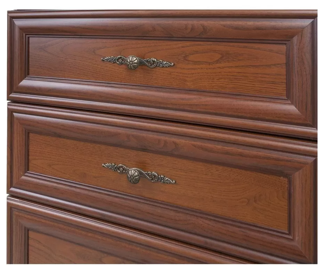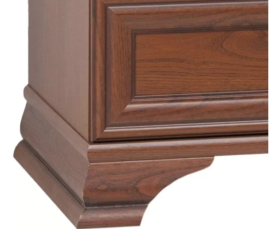 При изготовлении тумбочки белорусский производитель использовал МДФ и древесностружечное полотно в пленке (ЛДСП). Оба материала отлично держат форму, выдерживают статические нагрузки и не требуют сложного ухода. В тумбе Кентаки каштан каждая деталь продумана до мелочей. Она привлекает идеальной стыковкой элементов, аккуратной сборкой и плавным ходом ящиков.