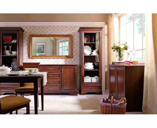 Ее витиеватые ручки и резные ножки гармонично дополняют классический стиль, уместно смотрятся в неоклассических и современных интерьерах. Тумбочка этой коллекции представлена в каталоге в белом и каштановом цвете. Возможно, вам понравятся зеркала и полки зеркала и полки из представленной серии.