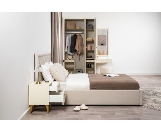 Для спальни предусмотрены гардеробная система, комоды, консольный стол и прикроватная тумба.