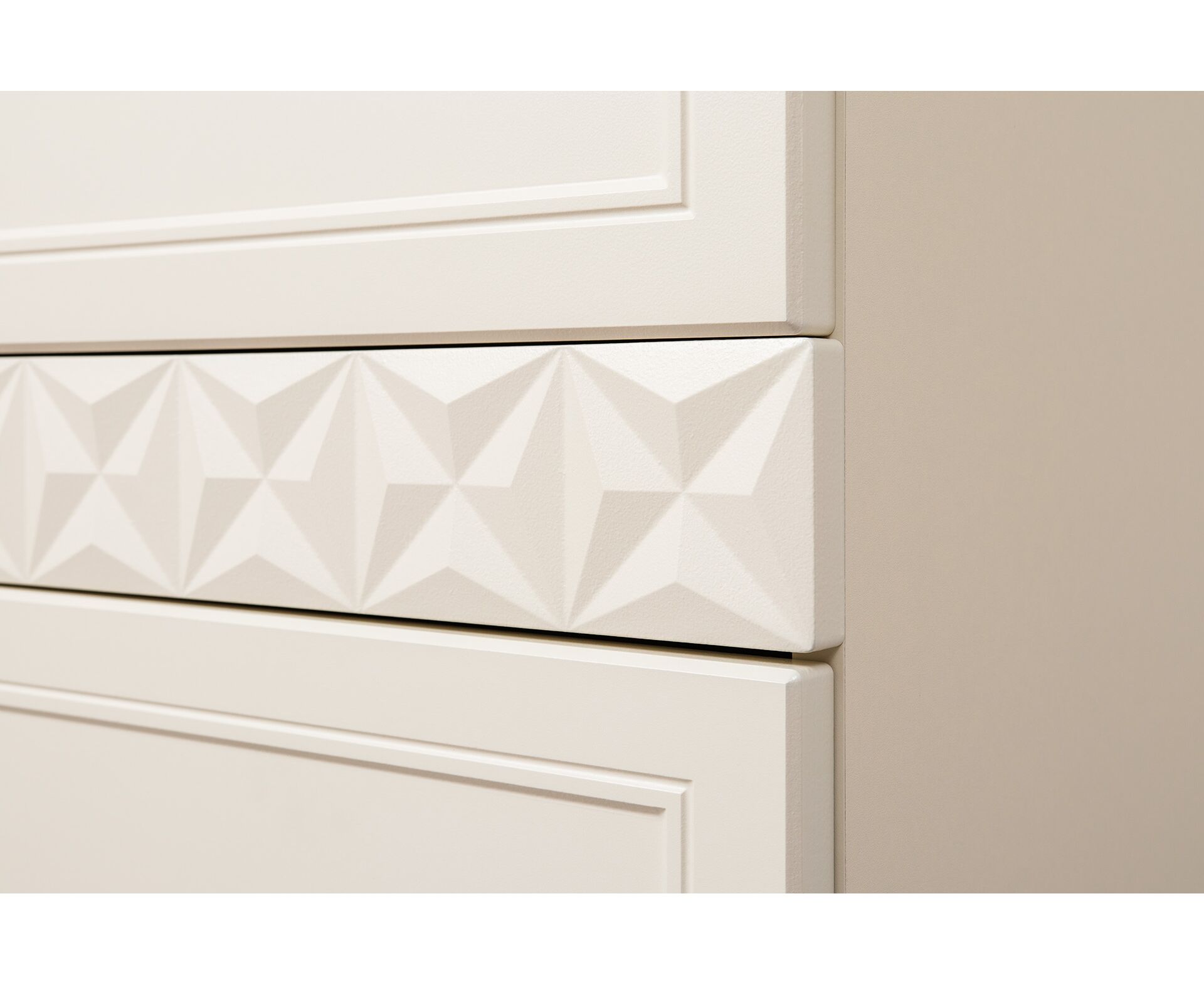 Изящные линии, глубокая фрезеровка фасадов из МДФ и благородные оттенки. Утончённая «Слоновая кость» и изысканная «Олива Шагрень» с глубоким зелёным тоном — создают атмосферу уюта, тепла и благородства. Металлические ручки и опоры золотого цвета придают мебели утончённый блеск, а петли и направляющие с доводчиками обеспечивают плавное и бесшумное закрытие фасадов.