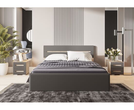 Модульная коллекция «Наоми» – это стильное современное решение в контрастном сочетании корпуса «дуб каньон» с элегантным матовым фасадом насыщенного грифельного оттенка. Оригинальное конструктивное решение коллекции – ручки фасадов, выполненные путем сложной фрезеровки с максимально реалистичным декором дубового спила.