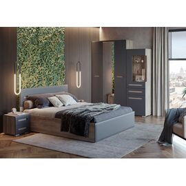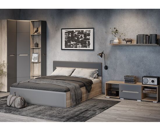 Модульная коллекция «Наоми» – это стильное современное решение в контрастном сочетании корпуса «дуб каньон» с элегантным матовым фасадом насыщенного грифельного оттенка. Оригинальное конструктивное решение коллекции – ручки фасадов, выполненные путем сложной фрезеровки с максимально реалистичным декором дубового спила.