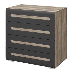 Модульная коллекция «Наоми» – это стильное современное решение в контрастном сочетании корпуса «дуб каньон» с элегантным матовым фасадом насыщенного грифельного оттенка. Оригинальное конструктивное решение коллекции – ручки фасадов, выполненные путем сложной фрезеровки с максимально реалистичным декором дубового спила.