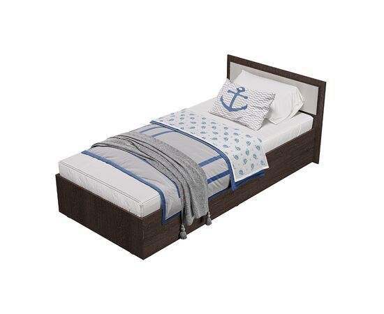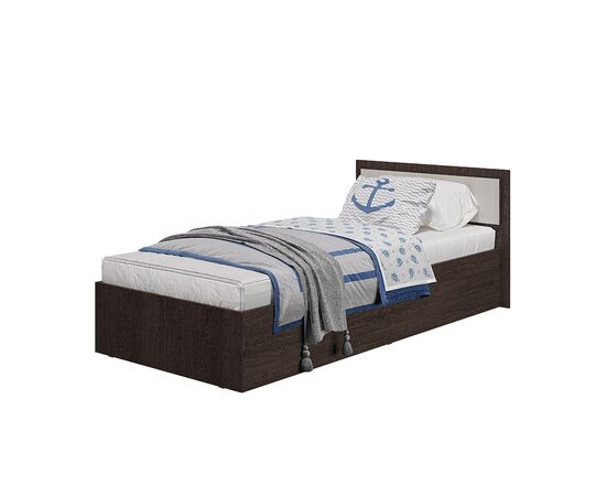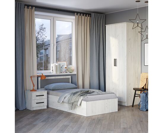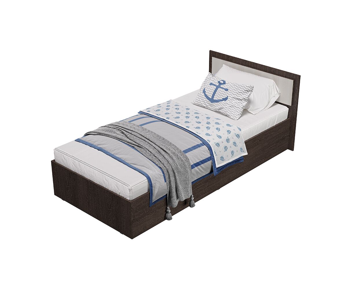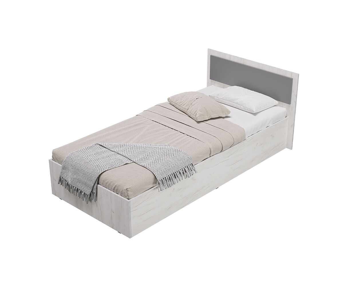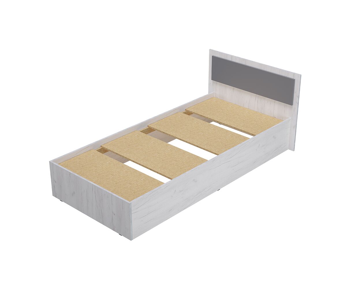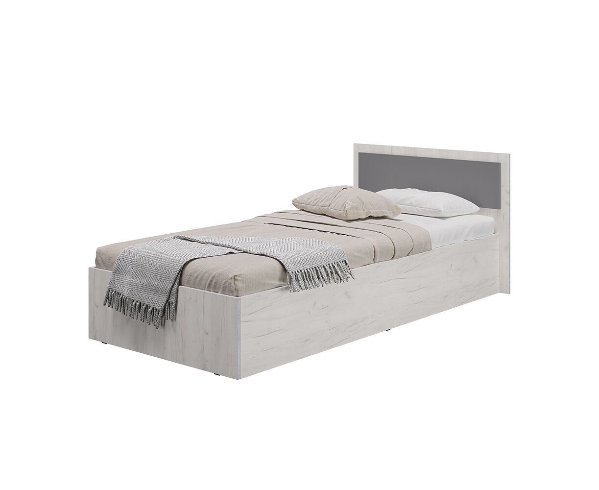 Односпальная кровать "Фиеста" выполнена из высококачественной ЛДСП в декоре "дуб крафт белый". Изголовье - ЛДСП цвета "графит" 16 мм. Отсутствие ножек избавит вас от скопления пыли под кроватью.