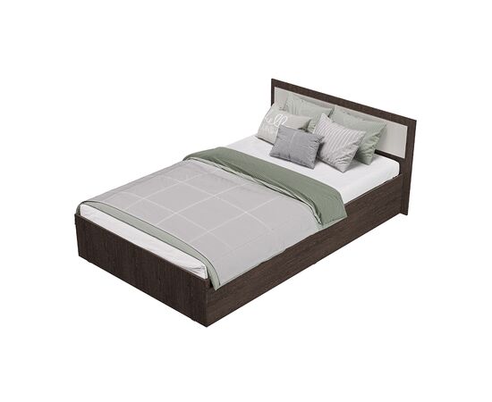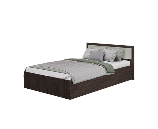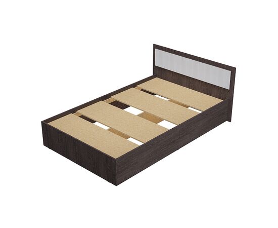 Кровать "Фиеста" выполнена из высококачественной ЛДСП в цвете "венге". Изголовье имеет вставку цвета "лоредо". У кровати отсутствуют ножки, это избавит вас от скопления пыли под ней.